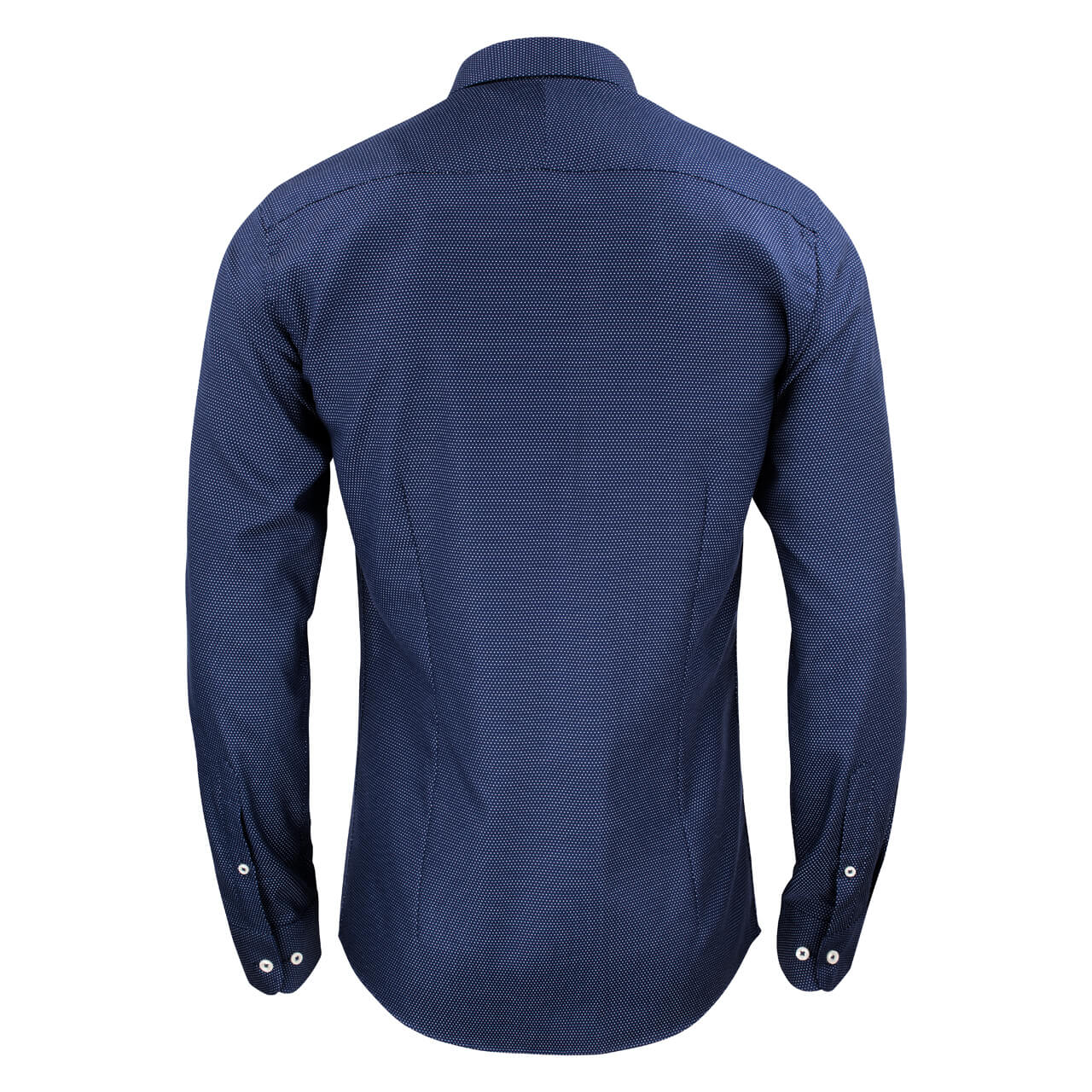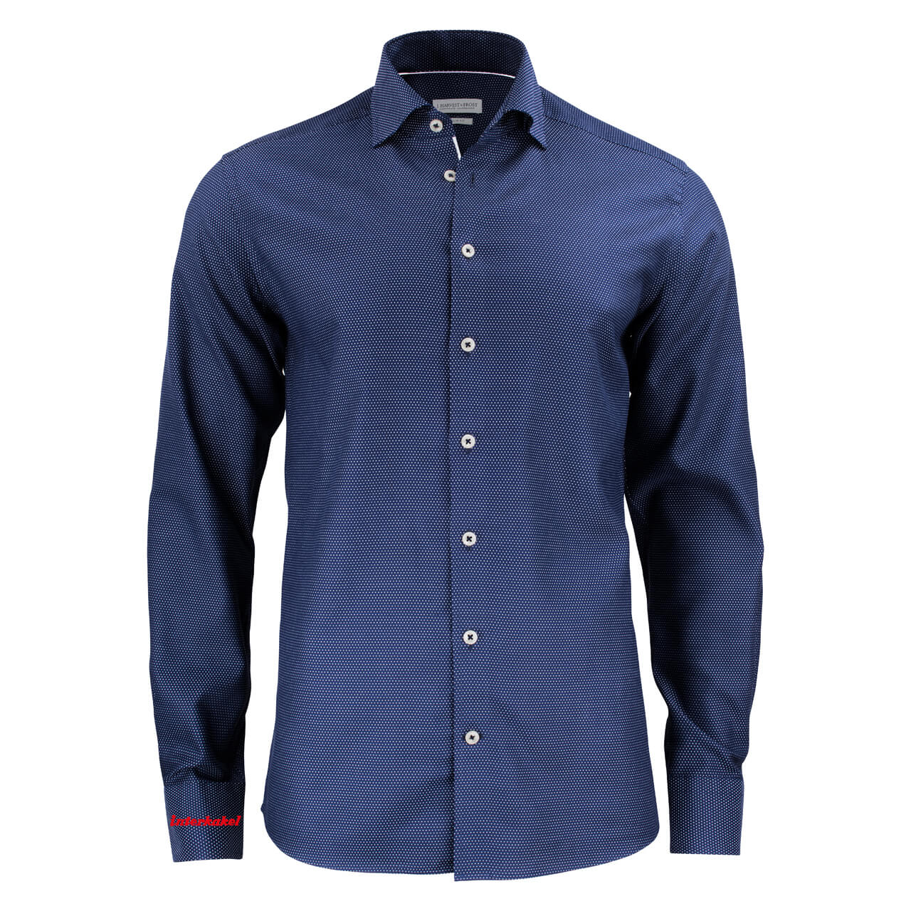 Skjorta med vita prickar på marin bakgrund för ett modernt och sofistikerat utseende. Non-Iron.